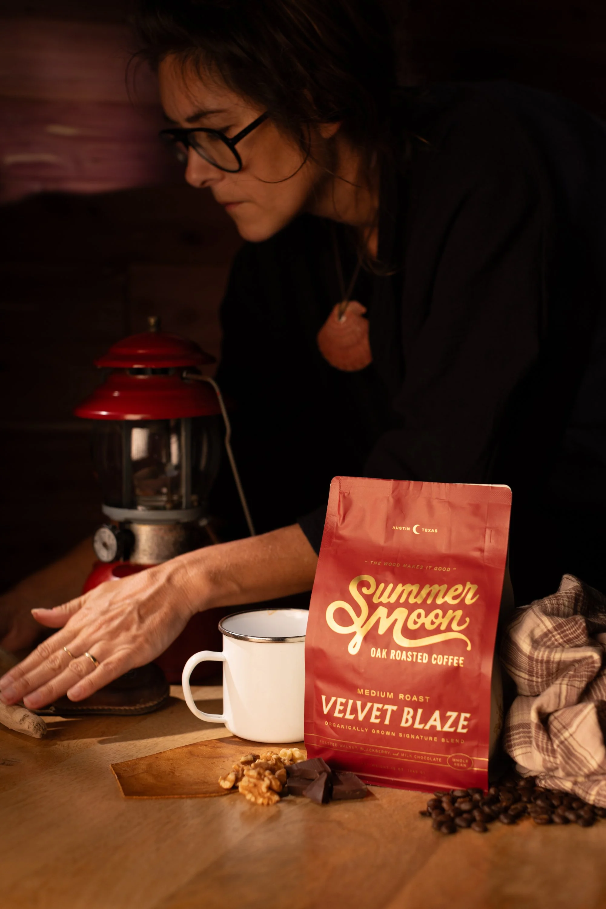 Summer Moon Coffee asked me to lead the visual direction for their latest bag release. I built the concept, designed the set, and shaped the lighting with a tight crew—rolling a 50s–60s camping vibe across all 12 bags.
